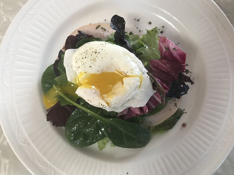 - Top with lettuce and poached egg.