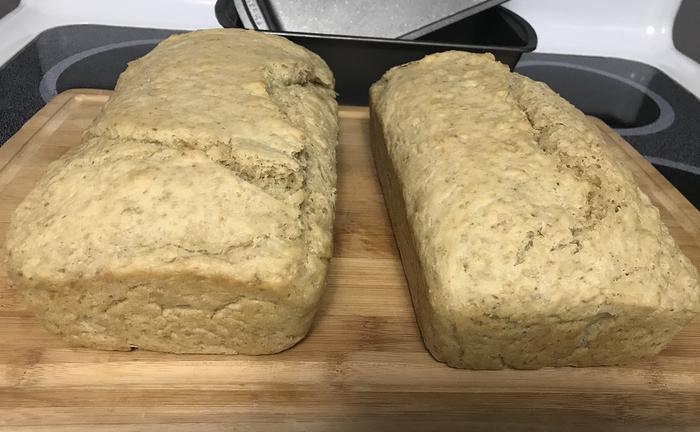 - Bake in a grease loaf pans at 350 degrees for 1 hour.