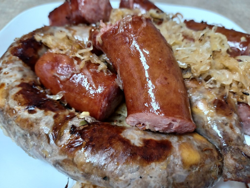 Greasing up with Kielbasa & Sauerkraut on a Wintry-Mix Day