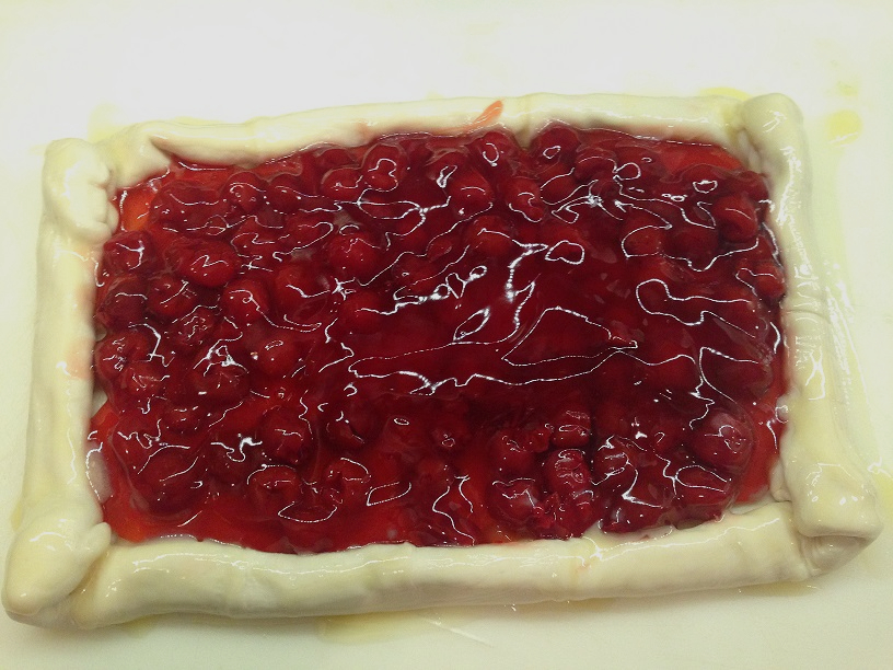 3. Gently fold on the sides of the pastry to ensure that the cherry filling stays within the fold.